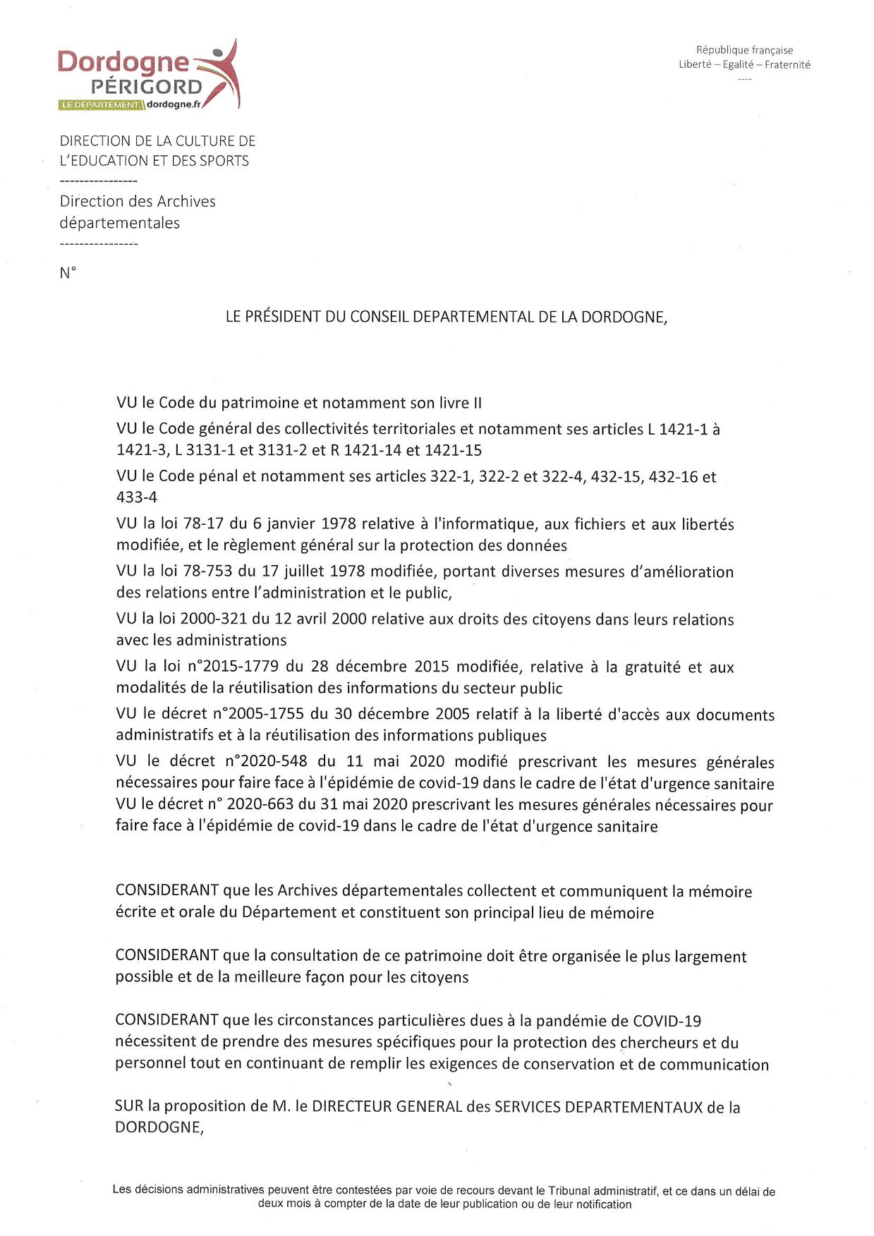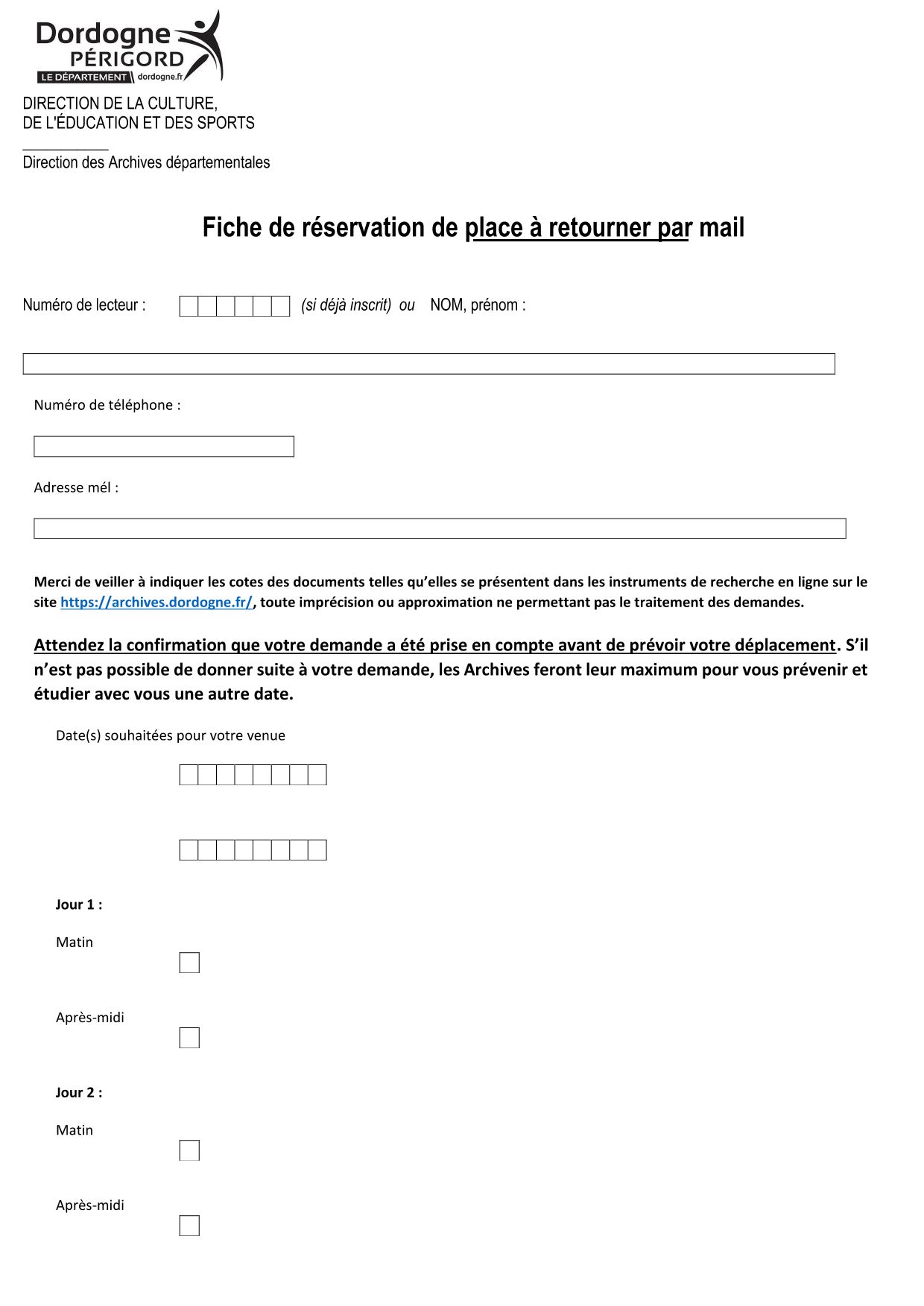 - Faire parvenir ce document avant 12h la veille du jour désiré par messagerie électronique : cd24.archives@dordogne.fr