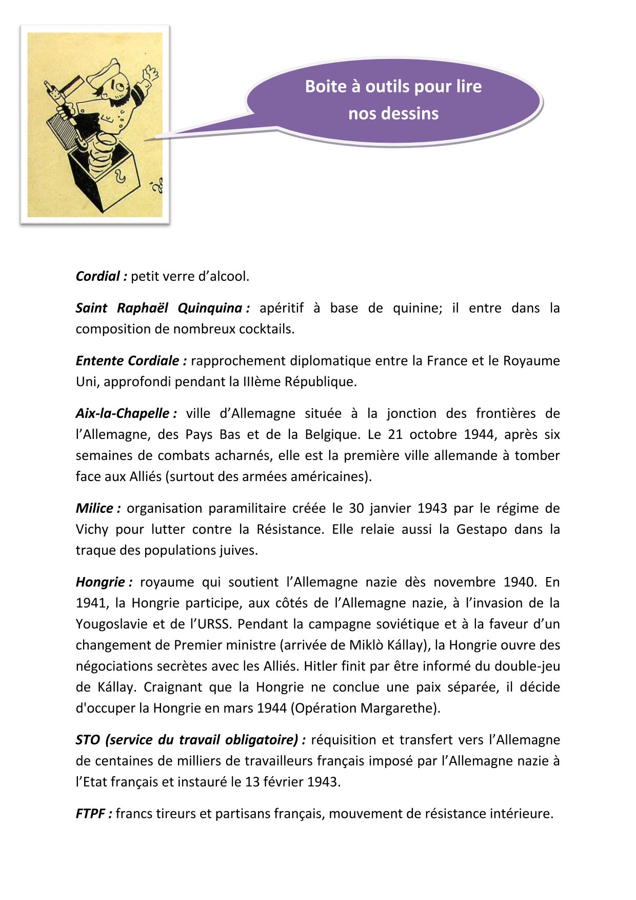 Un atelier pédagogique accompagné de sélections de dessins et d’une fiche lexique