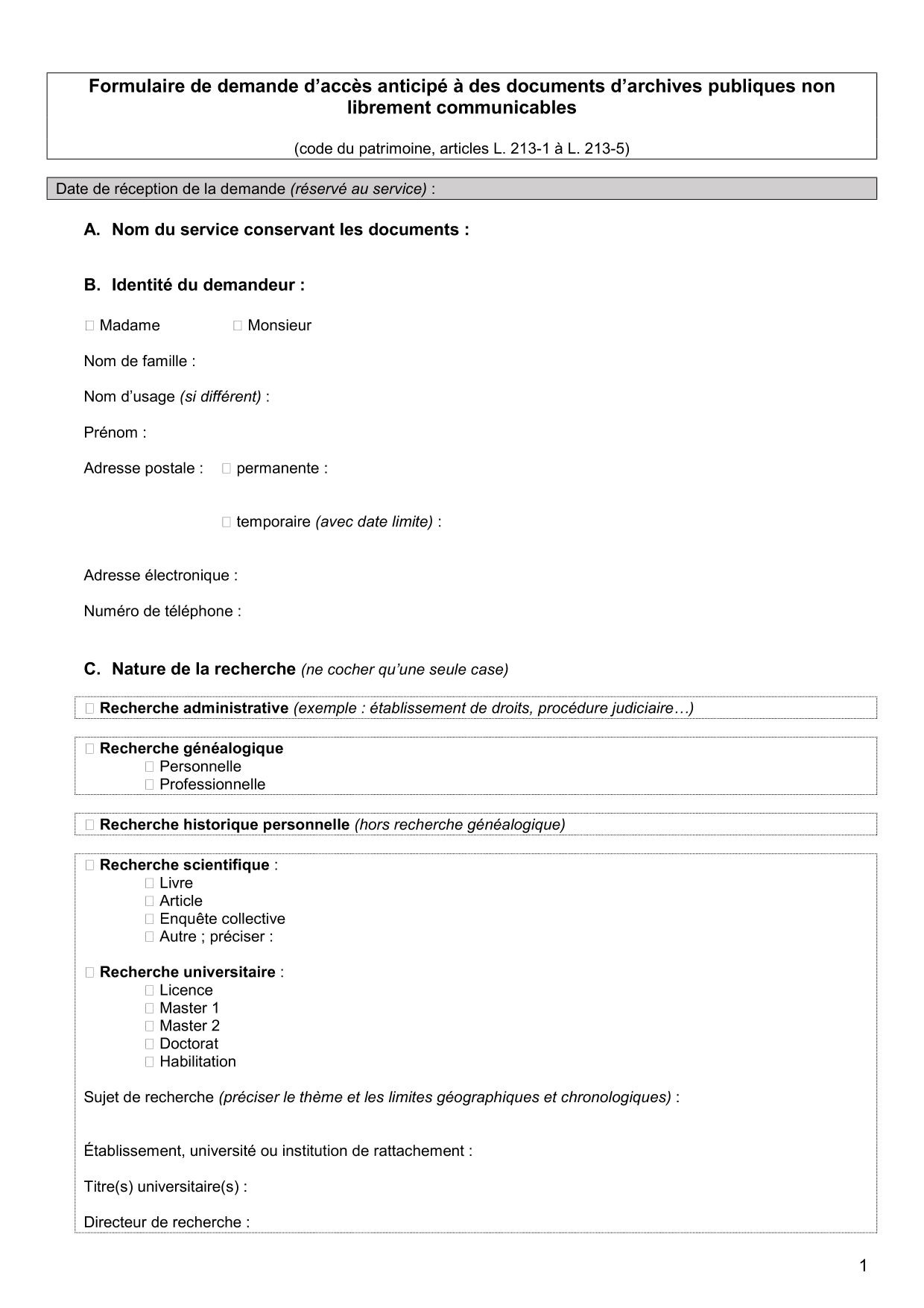 Toute personne a la possibilité de déposer une demande de dérogation dans le service qui conserve les documents. Celle-ci sera instruite dans un délai de deux mois maximum.
