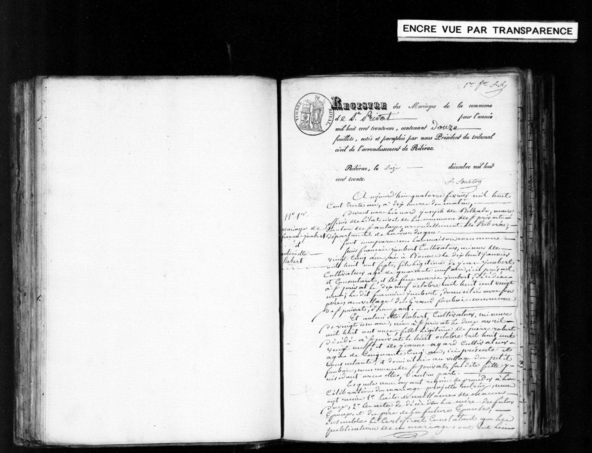 Collection Registres paroissiaux et d'état civil Lieux Saint-Privat-des-Prés (Dordogne, France) Cote 5 E 487/7 Titre Saint-Privat-des-Prés, Mariages (1831) Date 1831 Type d'acte Mariages