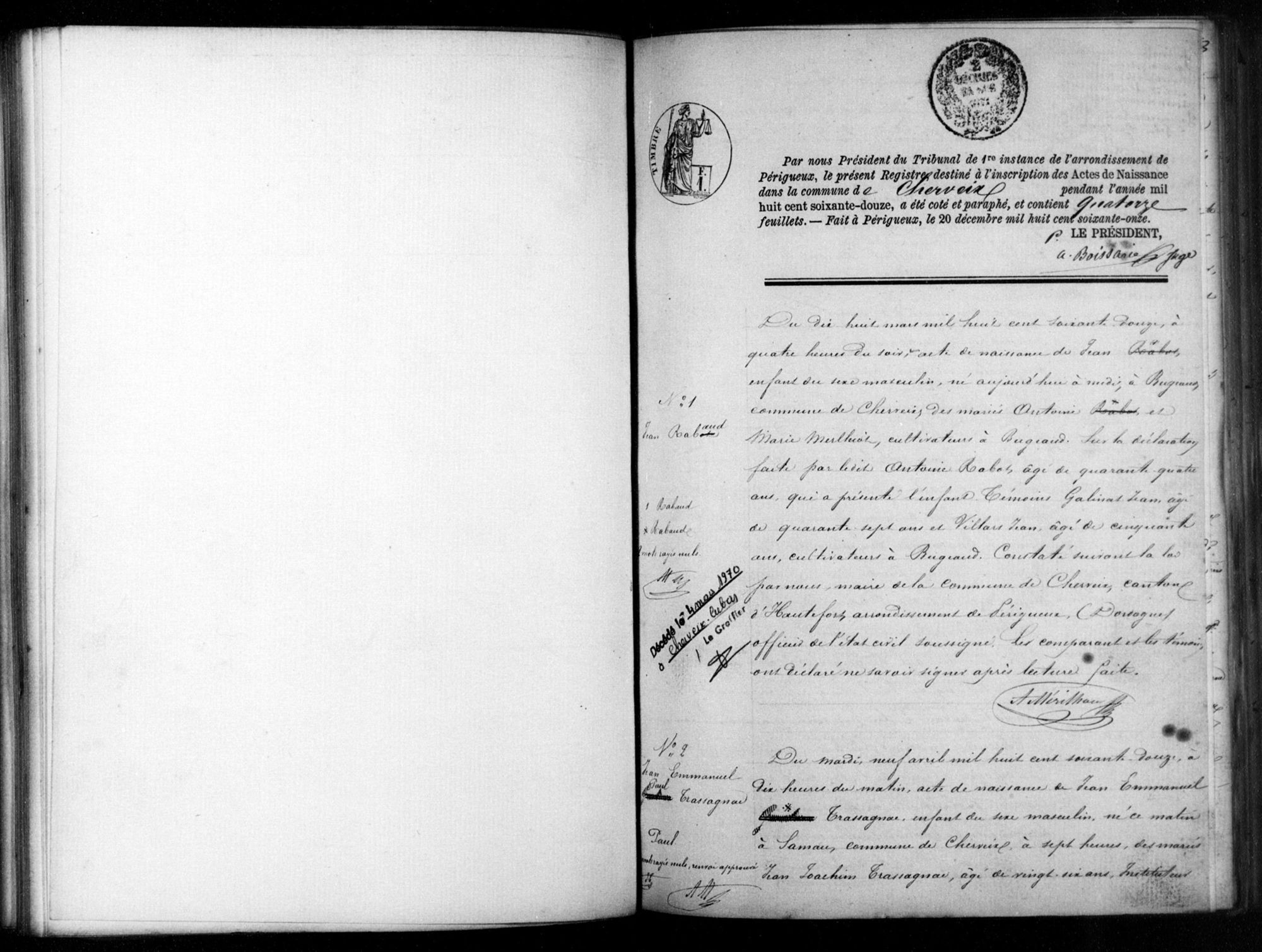 Collection Registres paroissiaux et d'état civil Lieux Cherveix-Cubas (Dordogne, France) Cote 5 E 119 23 Titre Cherveix-Cubas, Naissances (1872) Date 1872 Type d'acte Naissances