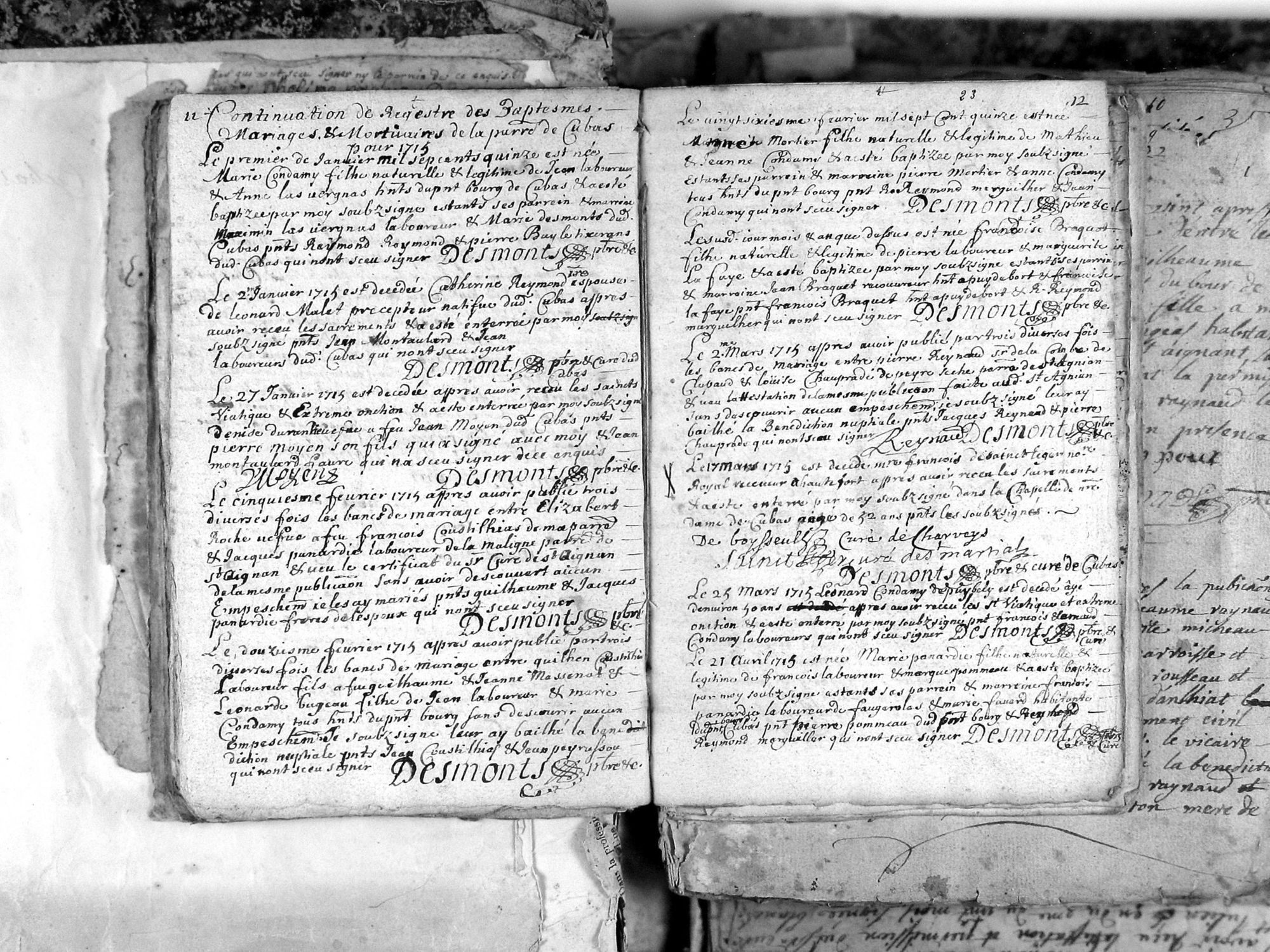 Cherveix-Cubas Paroisse Saint-Jean-Baptiste, Baptêmes Mariages Sépultures (1704 - 1746)
