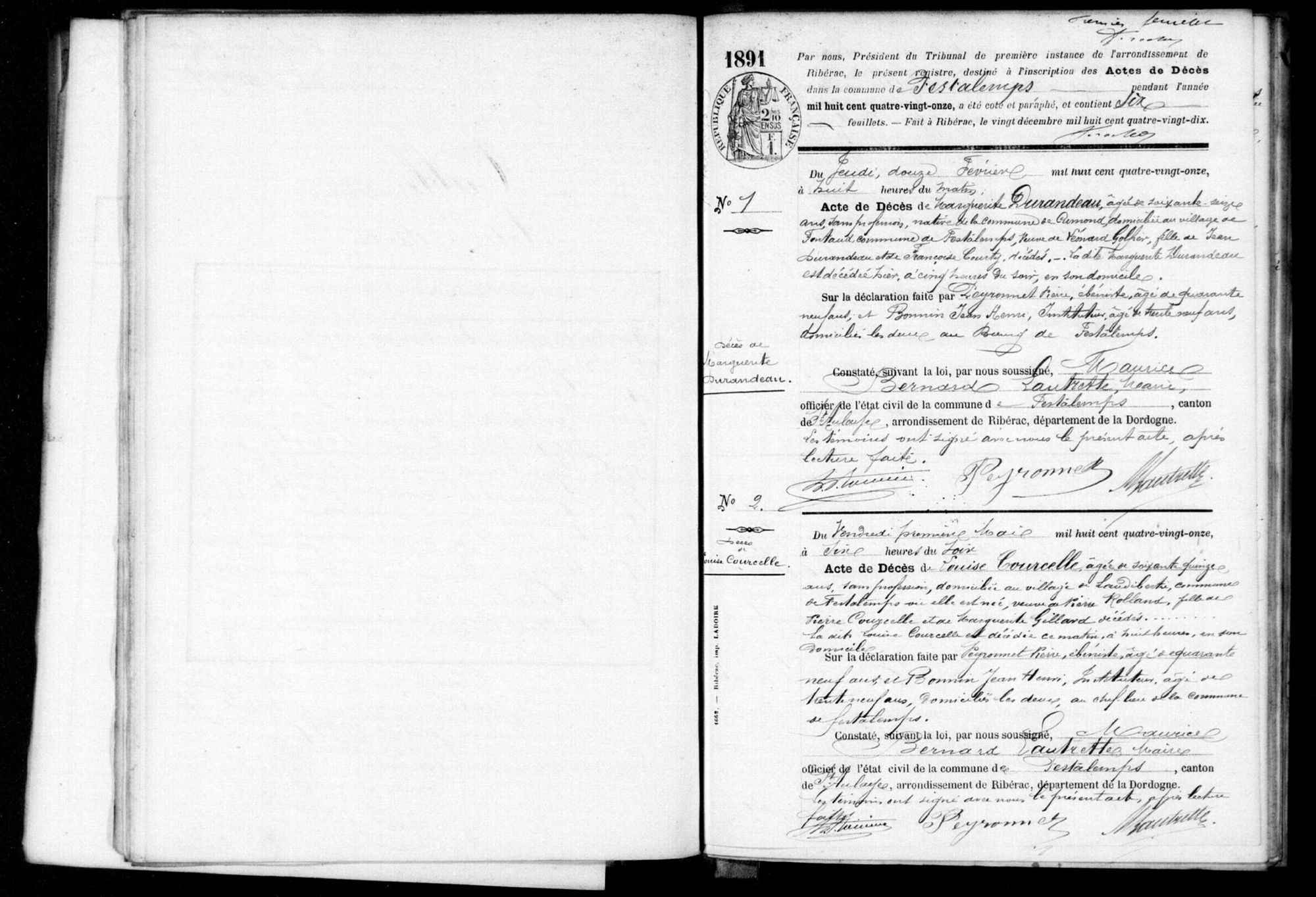 Festalemps, Décès (1891)