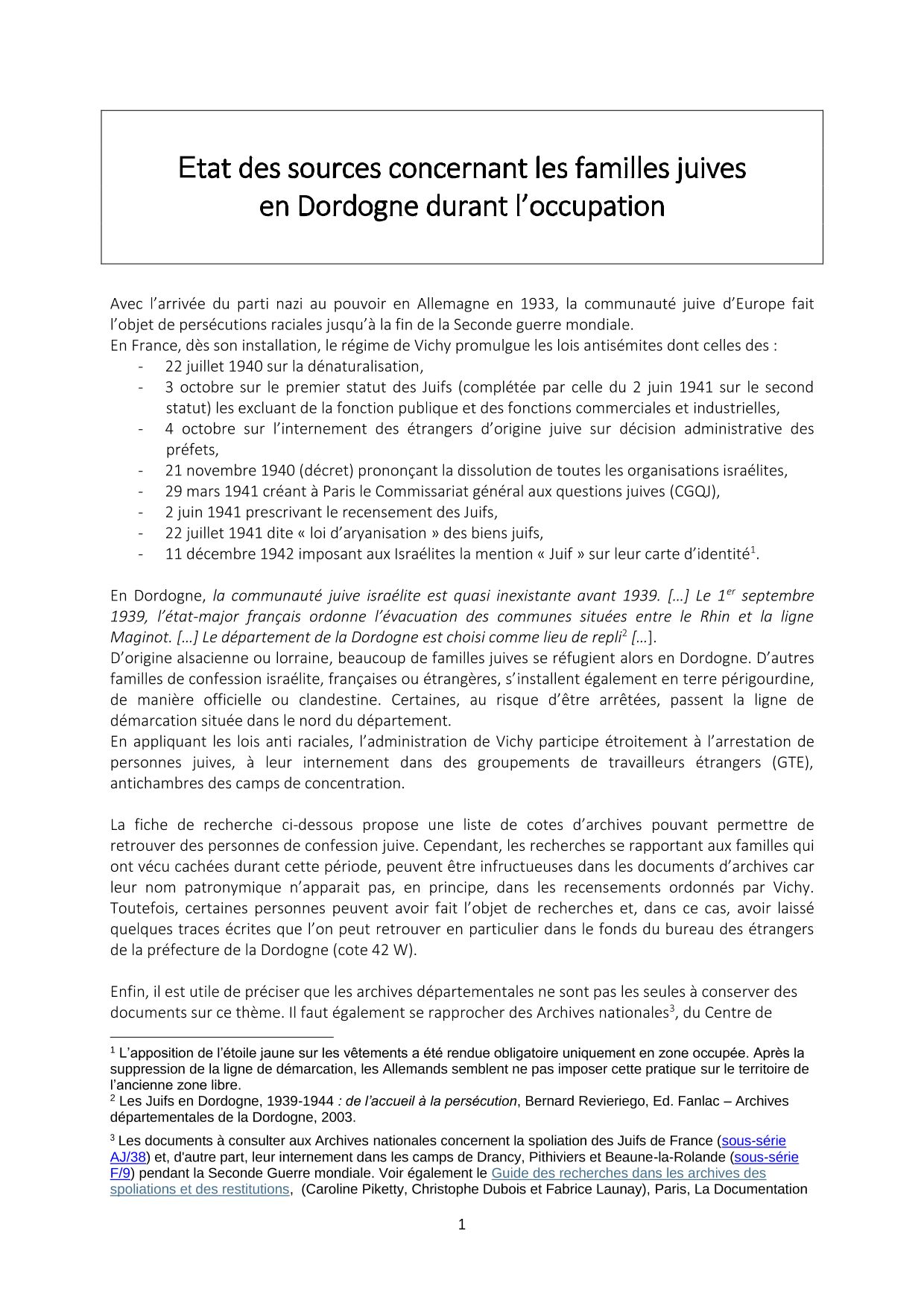 Familles juives en Dordogne durant l'occupation Familles juives en Dordogne durant l'occupation (1.7 Mo)