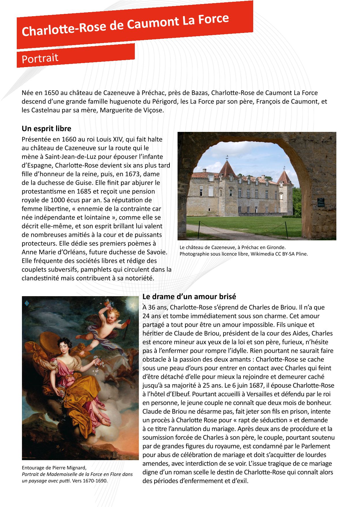 Retrouvez ci-dessous la fiche portrait de Charlotte-Rose de Caumont La Force :