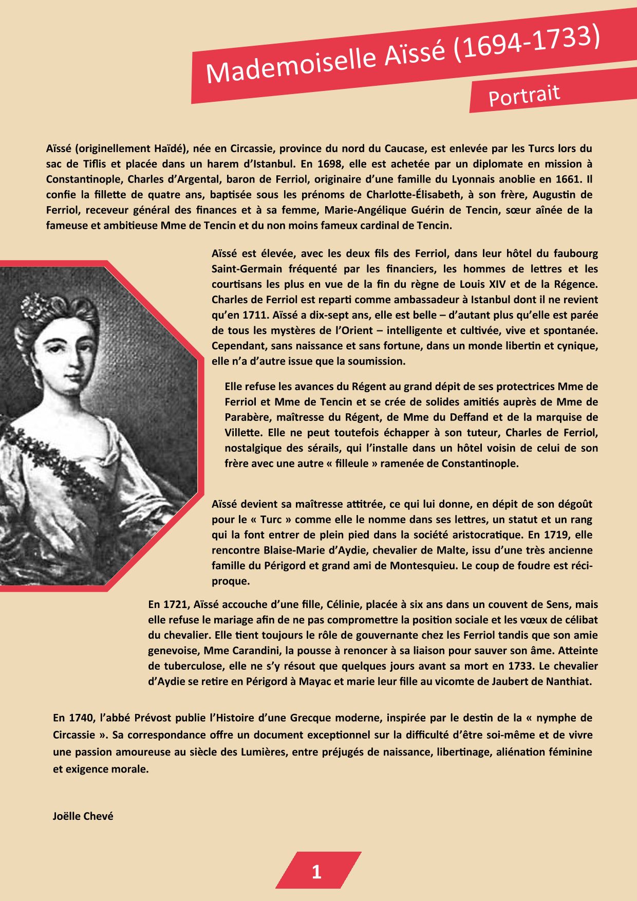 Retrouvez ci-dessous la fiche portrait de Mademoiselle Aïssé :