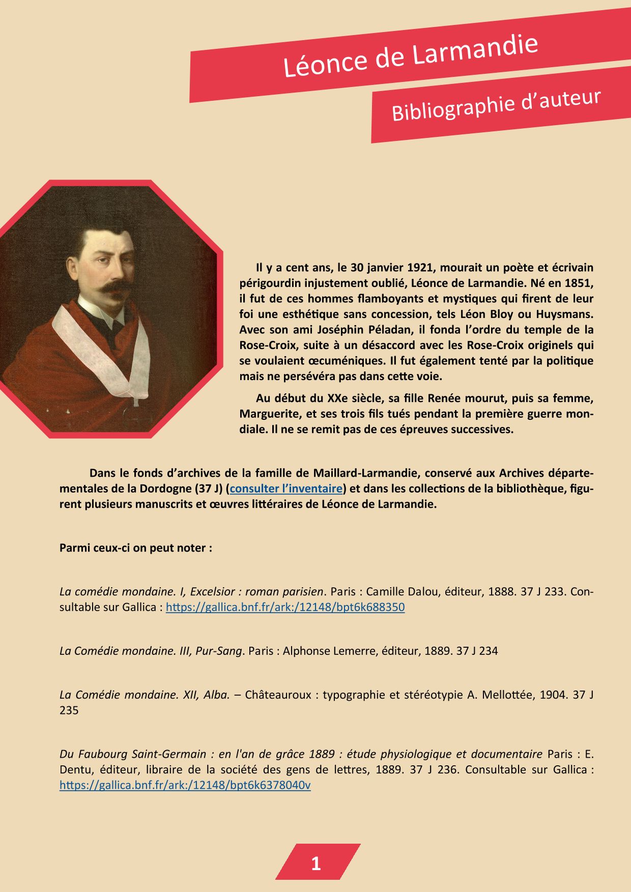 Retrouvez ci-dessous la fiche portrait de Léonce de Larmandie :